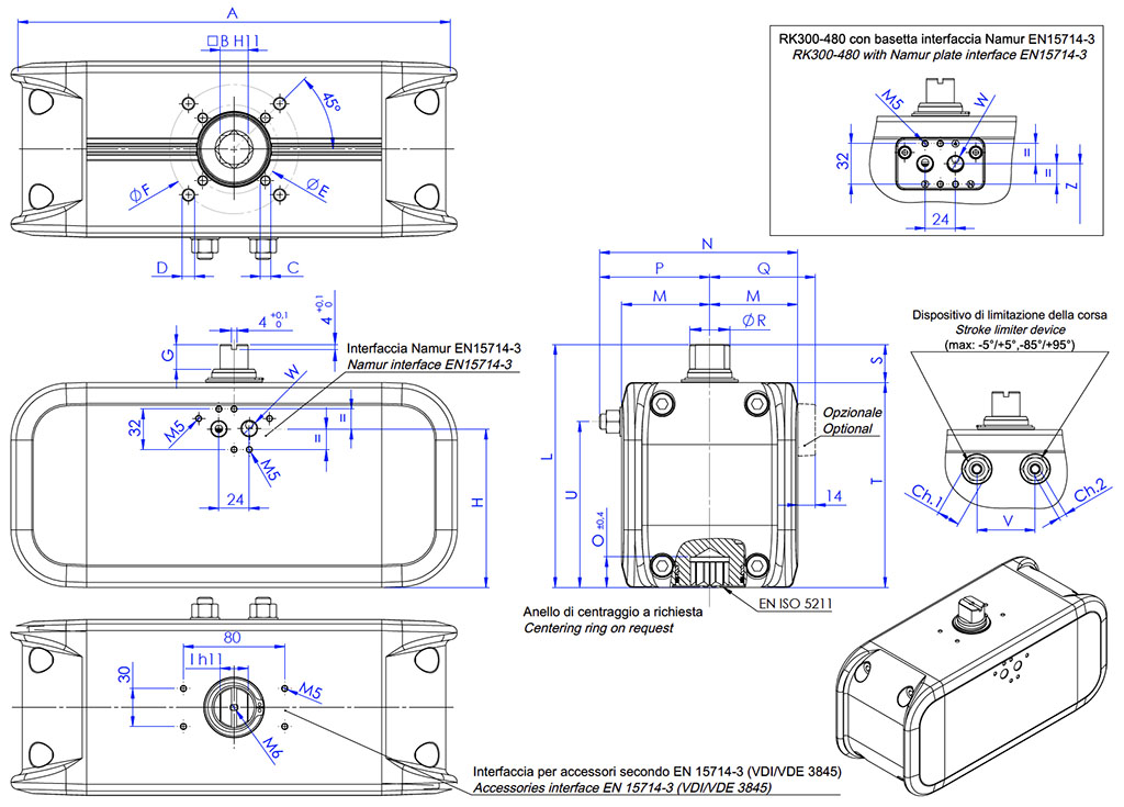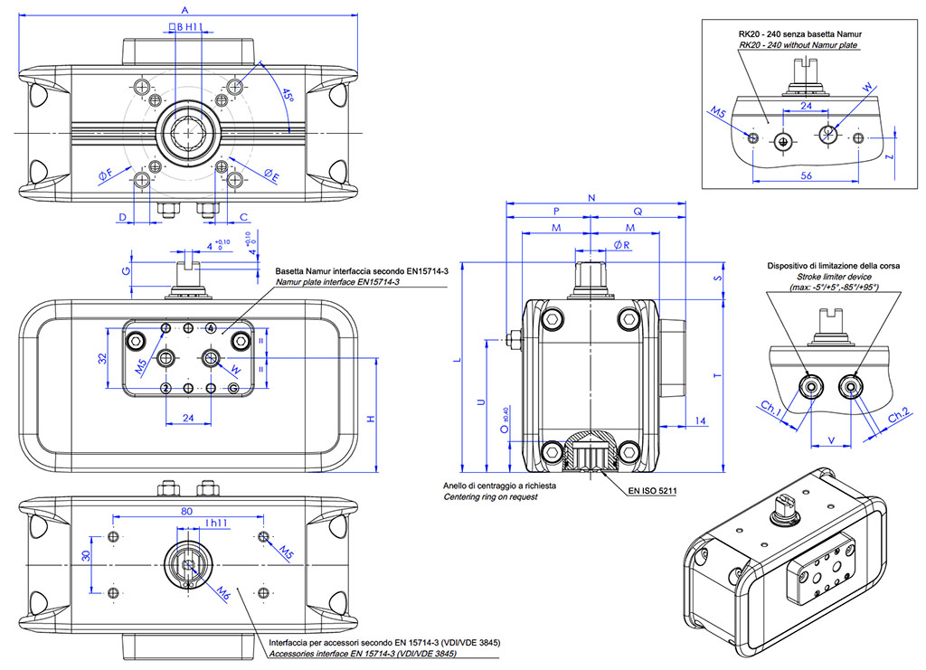 • Bağlantı flanşı: EN ISO 5211: F03 - F04 - F05 - F07 - F10 - F12.